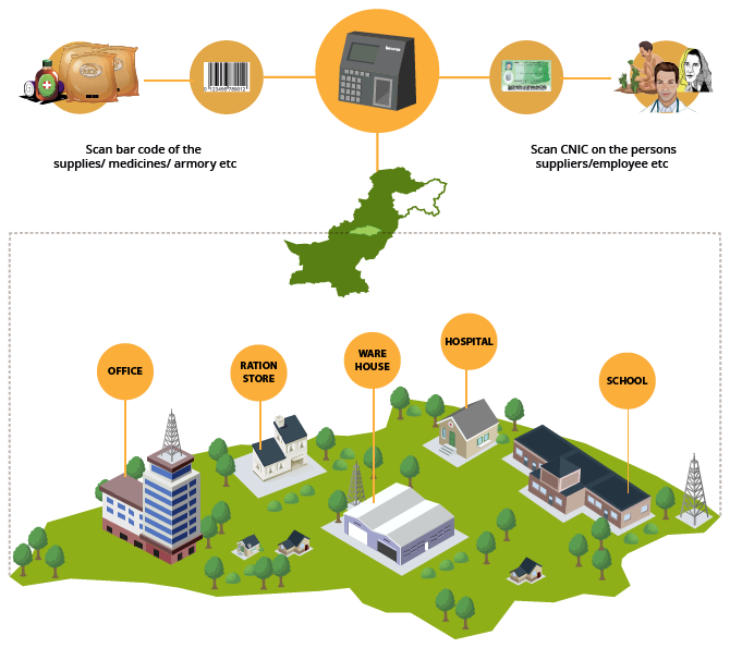 Our leading product, i-MPLOYEE is an exclusive, comprehensive and innovative attendance, access and reporting system based on modern biometric and RFID technology. This revolutionary new product offers one of a kind, on the go, plug-n- play solution which enables customer's flexibility to get attendance and access data from any temporary or permanent location in Pakistan through smart phone app or web portal. This original technology is cloud-based and represents a new generation in identity verification. Its multi-factor authentication relies on two factors: a) something the user knows and b) something the user is. It has a wide range of use. Use it to register and data enter anything i.e. medicines, ration, any kind of supplies as this device is able scan the barcodes , and again use it for the person information ,attendance of any citizen of Pakistan who has CNIC card.